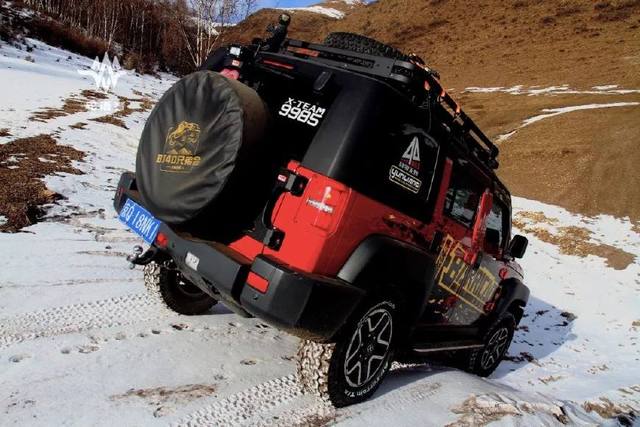 在一处陡坡前,领航车T6的BJ40L奋力的向上攀爬,经过几次努力尝试无果。最终这个冰雪陡坡成为了车队前行的屏障,在众人的帮助下,车队艰难的在覆盖积雪的陡坡上调头。